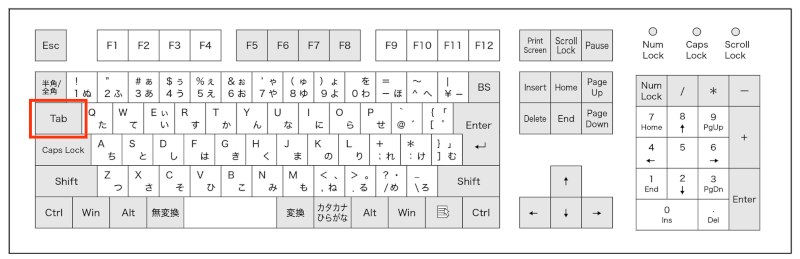 Tabキーによる移動