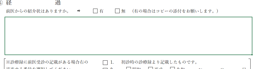 また、前医受診に関する記載をした場合は、いつの診療録から記載したものかを記入してください。