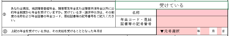 上図の場合、①は個人番号または年金基礎番号が必須ですが、個人番号が12桁、年金基礎番号が10桁のため、10桁までしか色がついていません。