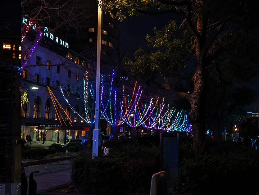 前回に引き続き写真は関内です。当オフィスから徒歩圏内にある、山下公園のイルミネーションです。