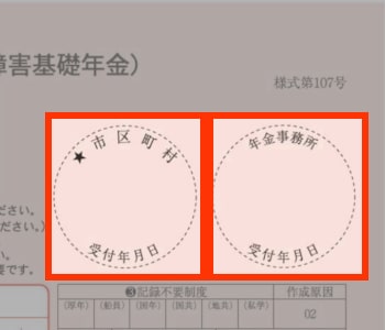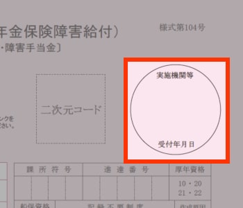 障害基礎年金であれば、「★市区町村 受付年月日」または「年金事務所 受付年月日」、障害厚生年金であれば、「実施機関等 受付年月日」が該当します。