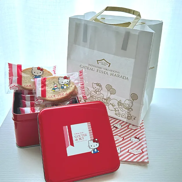 様々な企業がキティ50周年を記念した商品を販売しているのですが、ラスクが有名なガトーフェスタハラダの商品がとてもかわいいのでご紹介します。