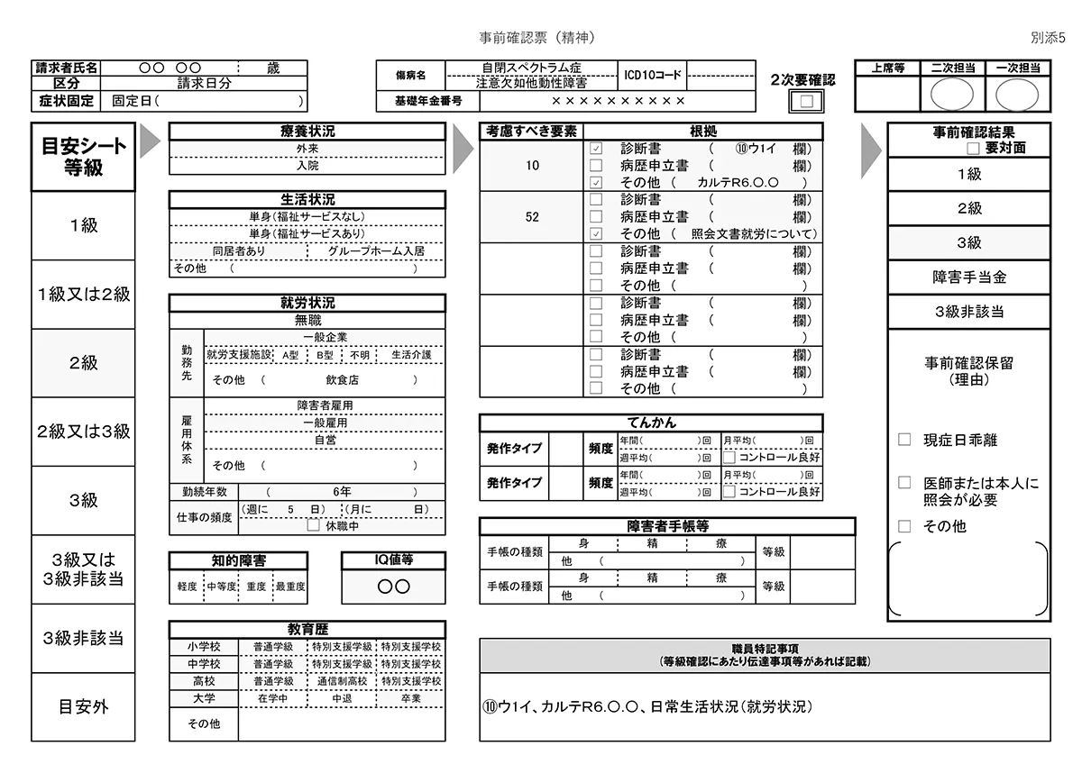 事前確認票とは、職員が事前に必要な個別の情報を整理した内部資料で、認定医との伝達にも使用します。