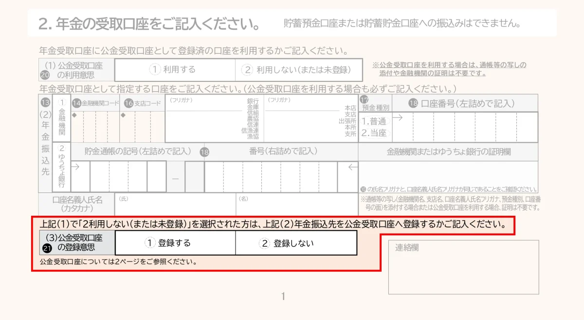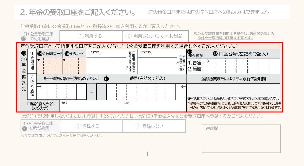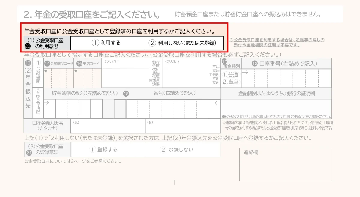 障害年金だけでなく、老齢年金、遺族年金すべての年金請求書に「公金受取口座」についての項目が追加されました。