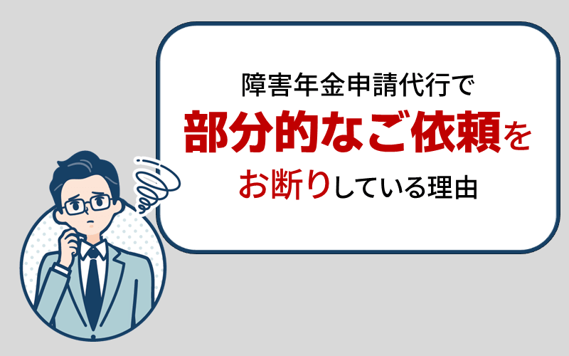 当社でも、顧客満足の向上のため、より良いサービスの提供に努めておりますが、部分的な障害年金業務のご依頼はお断りしています。