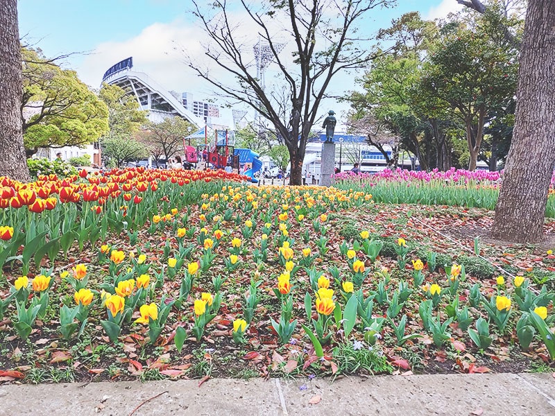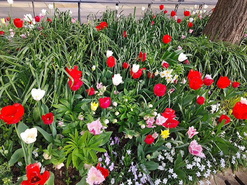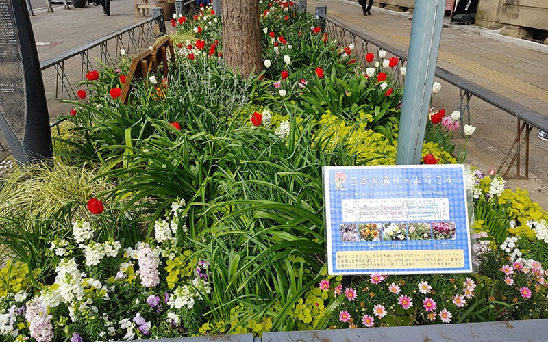 日本大通りは花でいっぱい。現在、横浜市は、山下公園や港の見える丘公園などを会場に、2021年3月27日(土)から6月13日(日)まで「ガーデンネックレス横浜 2021」が開催されています。