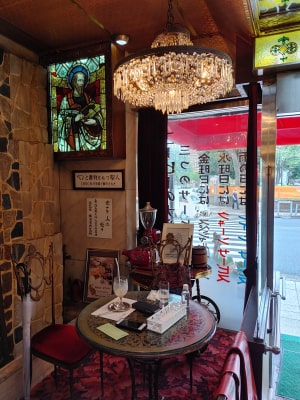 また、写真のようにシャンデリアやステンドグラスや調度品など、レトロ感満載です。