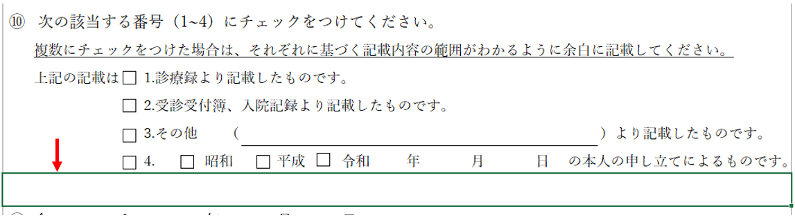 ⑩の「余白に記載してください」について