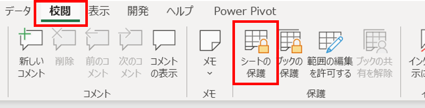 校閲タブに切り替え、シート保護の解除をクリックします。