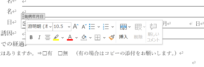 Word版の「受診状況等証明書」は、表を使用しています。