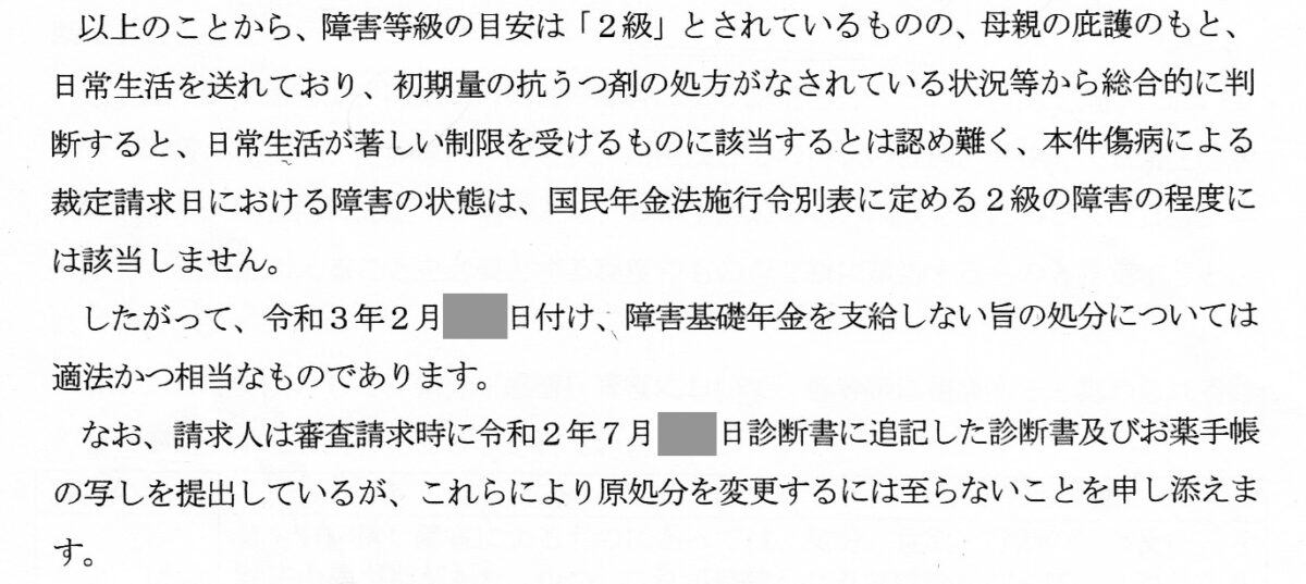 前回のブログでお伝えしました、7/12の公開審理の結果ですが、厚生労働省保健局より、保険者(政府)が不支給とした原処分を取り消し、2級の障害基礎年金を支給する旨が記載された裁決書が届きました。