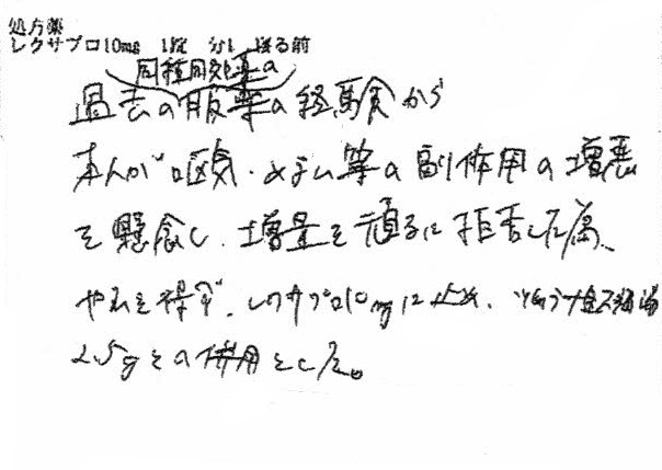ご本人は、副作用に関する恐怖心があり、それを主治医にお伝えしていました。