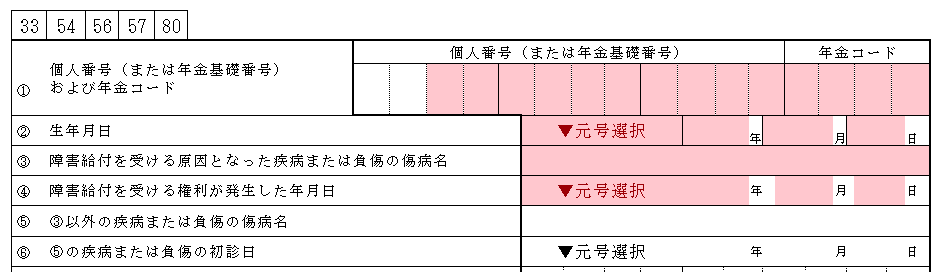 上図の場合、①は個人番号または年金基礎番号が必須ですが、個人番号が12桁、年金基礎番号が10桁のため、10桁までしか色がついていません。
