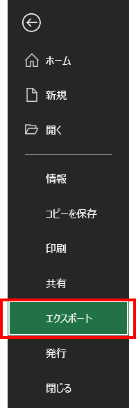 「ファイル」から「エクスポート」を選択します。