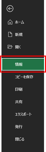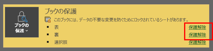 保護を解除したい場合は、「ファイル」から「情報」を選択し、ブックの保護の右側にある「保護解除」を押してください。