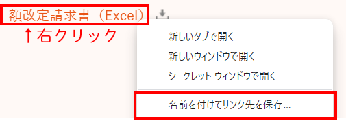 リンクを右クリックし、「名前を付けてリンク先を保存」を選択し、好きなところに保存してください。