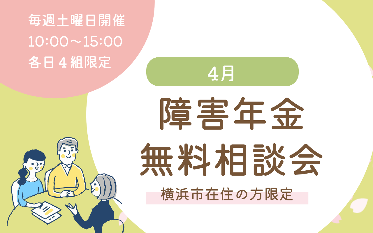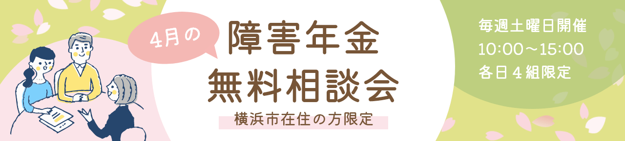 2023年4月の1か月間、横浜市在住の方限定で「障害年金に関する無料相談会」を開催します。