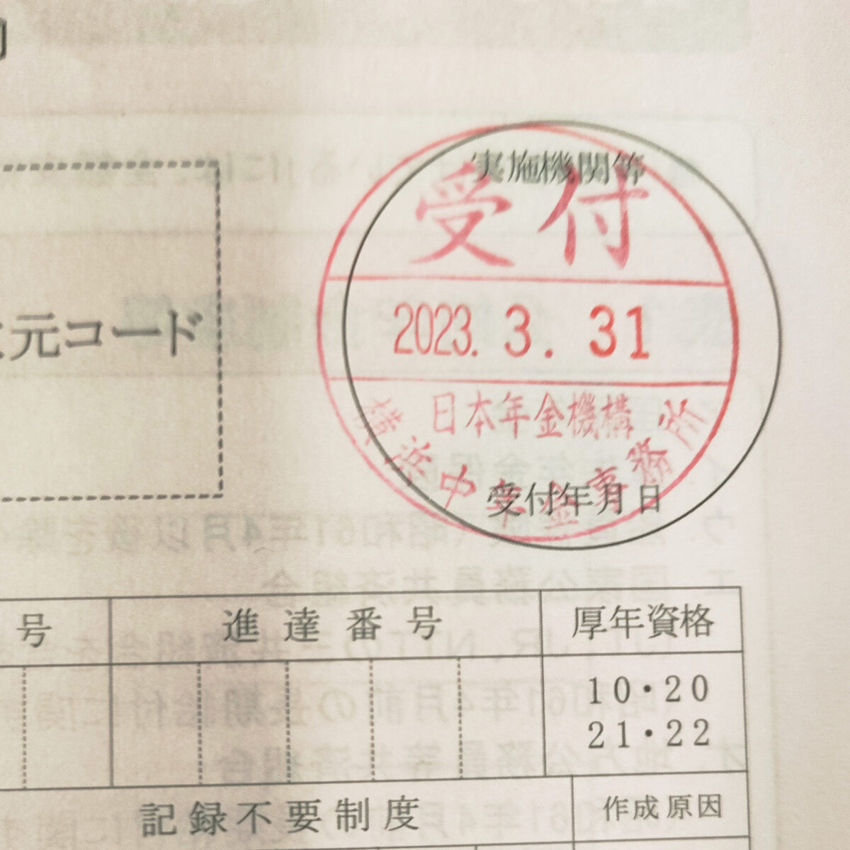 写真は、3月31日に横浜中年金事務所で、申請書類を受け付けられた証明となっております。