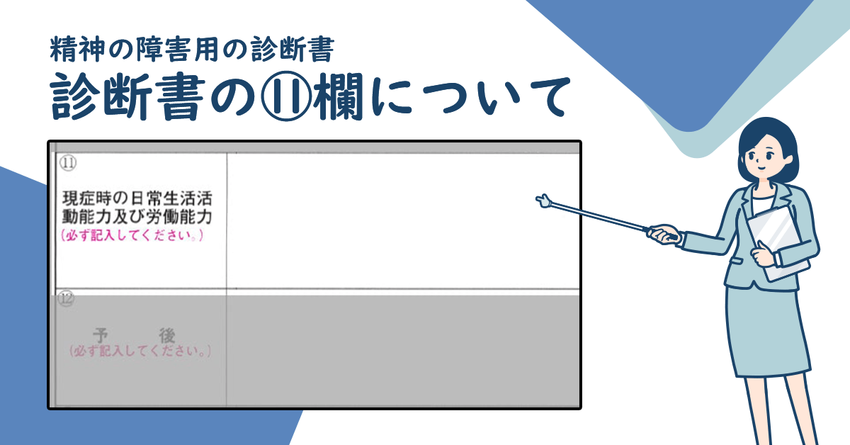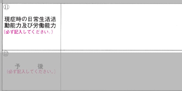 診断書の⑪は「日常生活活動能力及び労働能力」記載欄です。