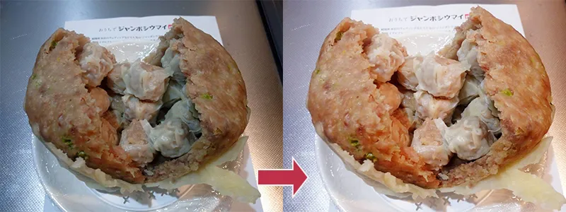食べ物はたいてい、こうやって赤を足して、明るくすれば解決します。