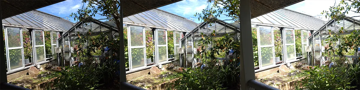 中央の写真は、ちょっと暗めの部分に寄ってるかもとは思いますが、空も植物もしっかり写っており、だいぶ見やすいんじゃないかと思います。