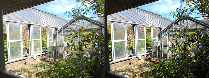 それでもなお右側の木の影がかなり強かったりはするので、この写真にも手を加えることになります。けれど、両端の写真を加工するのに比べたら、手間はだいぶマシです。