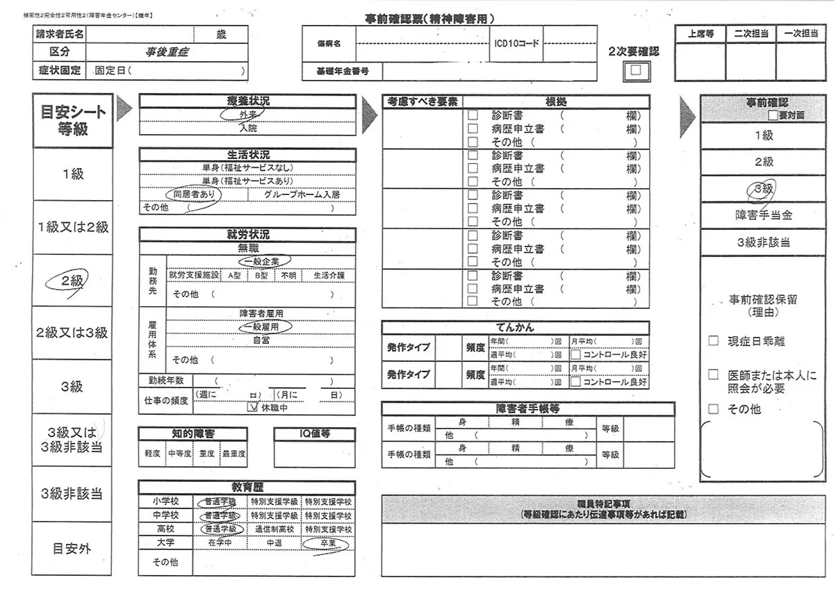 - 障害状態の審査は、日本年金機構が契約する認定医が行います。令和4年4月より、認定に必要な診断書等の障害状態に関する事項について日本年金機構の職員が事前確認票を作成する仕組みが導入されています。