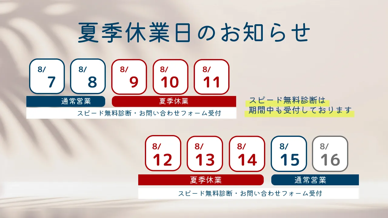 令和7年度夏季休業(8/9~14)のお知らせ