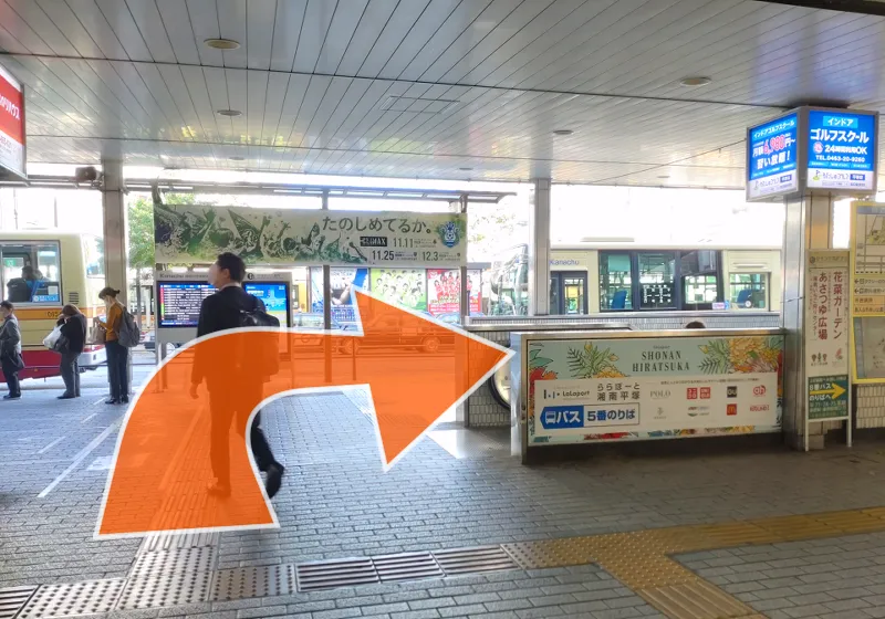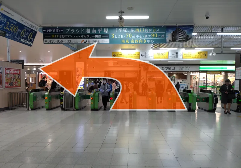 JR東海道本線「平塚駅」で下車し、東改札口を出てください