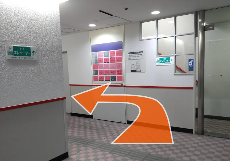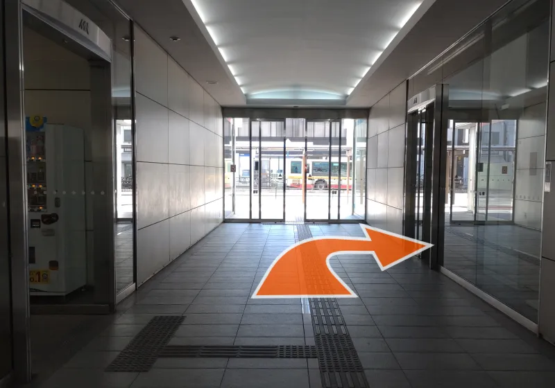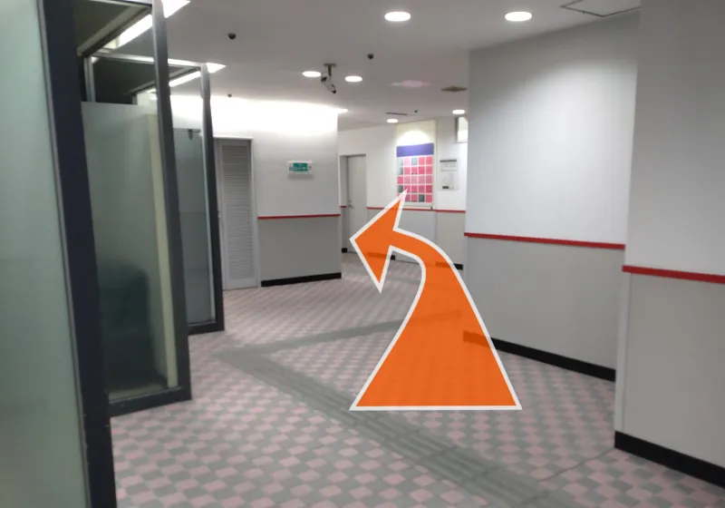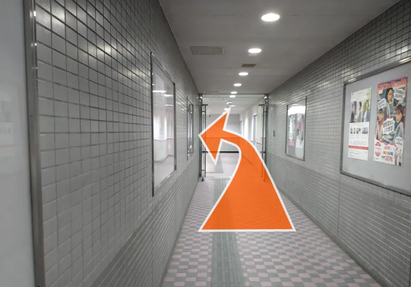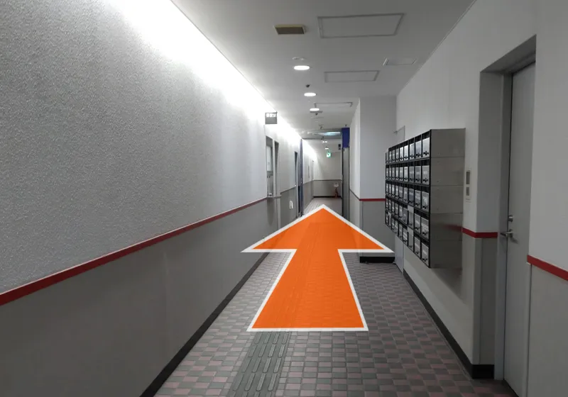 左右にエレベーターホールがありますが、右側の方に進んでください
