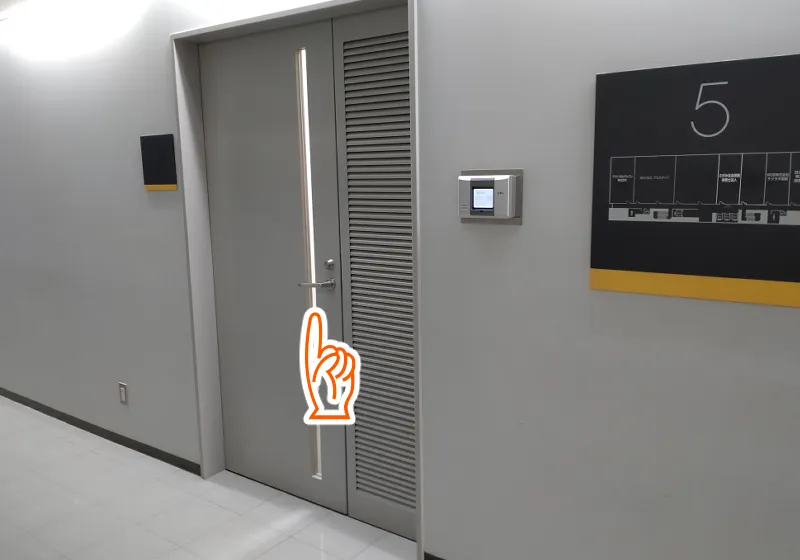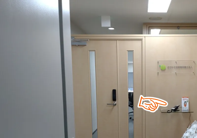 5階につくと、ほぼ正面に当社の入口がありますので、扉を開けてお入りください(開いている場合はそのままお入りください)
