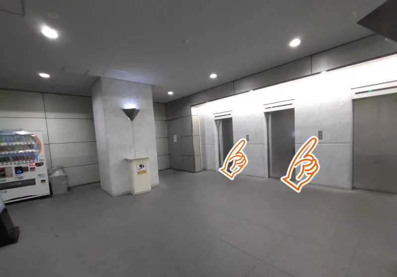 エレベーターが3基ありますので、来たものに乗って5階に向かってください