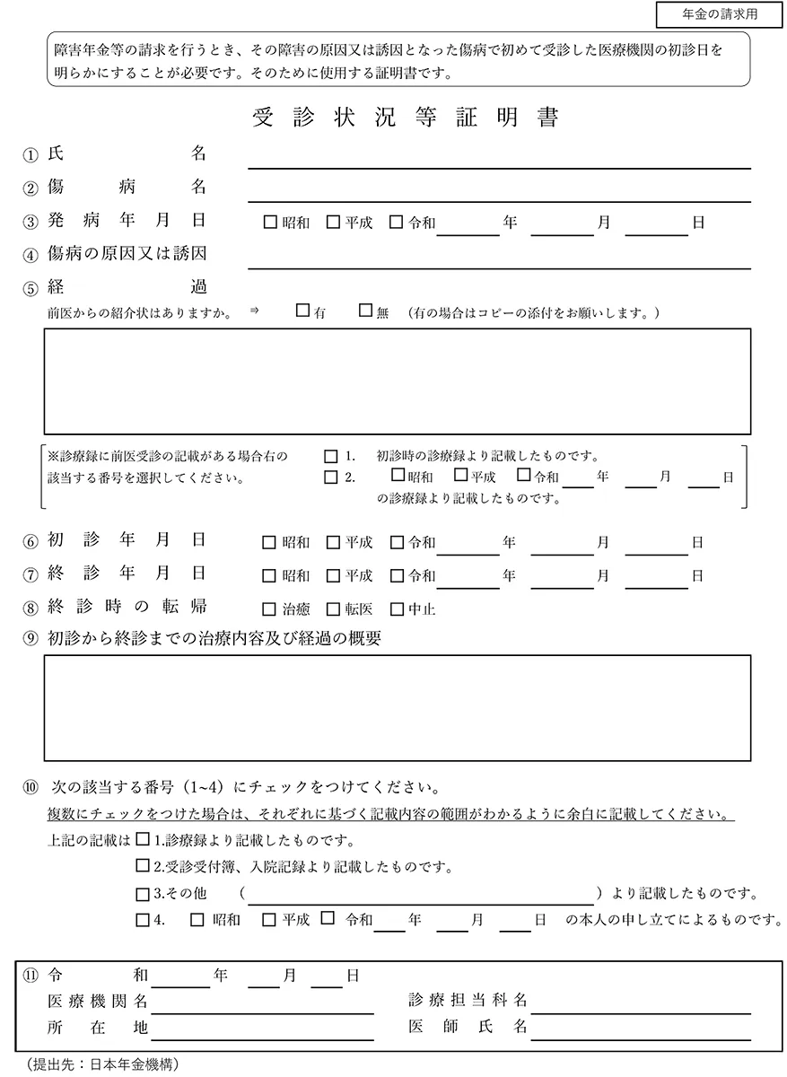 初診日の証明資料が何もないときのために項目として用意されていますが、初診日を証明せずに障害年金を受給できることはありません。