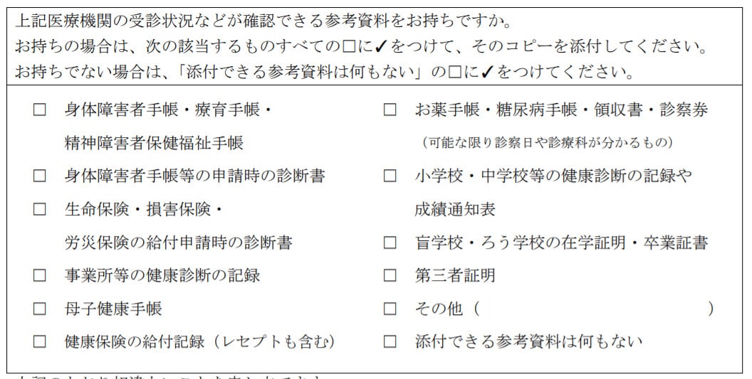 初診の医療機関にカルテがなどの診療記録があれば、それらを元に初診の医療機関で「受診状況等証明書」を書いてもらい提出します。