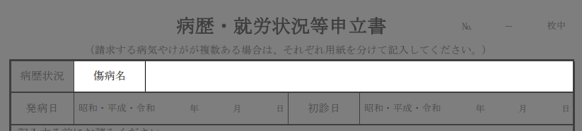 傷病名には、障害年金を請求する傷病として、基本的には現在の診断書と同じ傷病名を記載します。