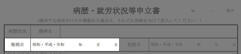 発病日も、基本的に現在の診断書と同じ日を記載します。