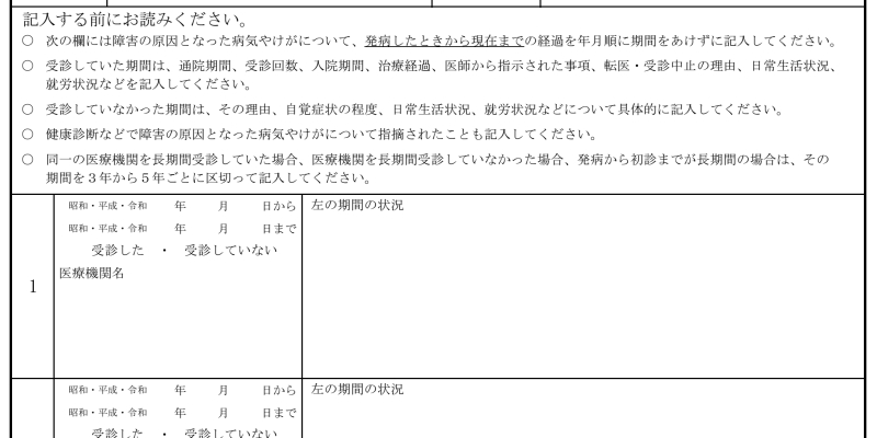 さらに発達障害や知的障害など生まれつきの障害がある方は、生まれた頃から書かなければなりません。