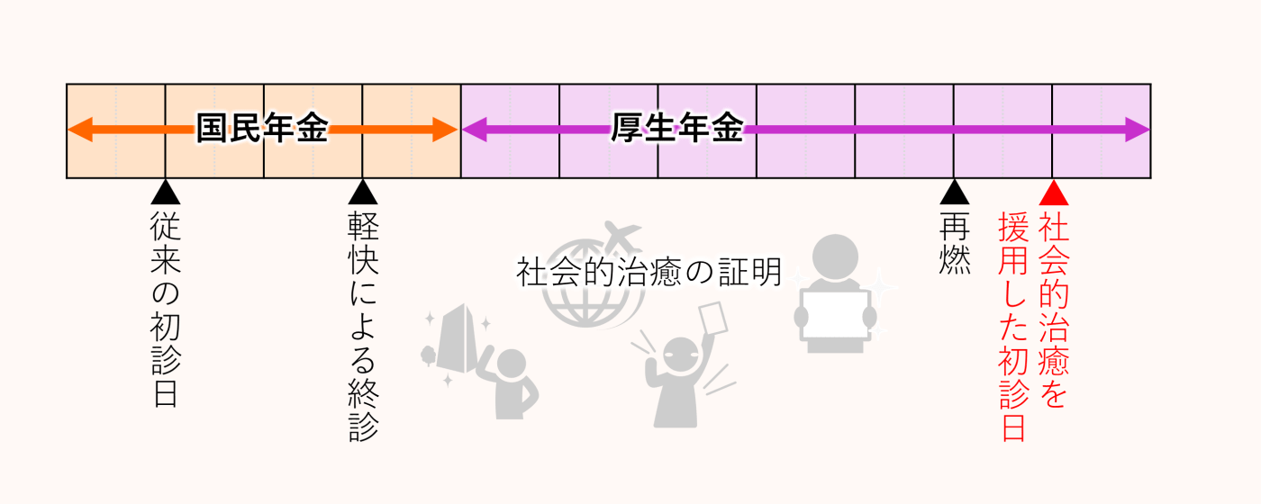 初診日には国民年金だったが、社会的治癒後に厚生年金に加入している場合