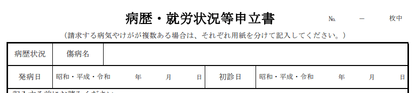 医師の診断書のほかに、病歴・就労状況等申立書という本人自身が記載する書類の提出も必須です。