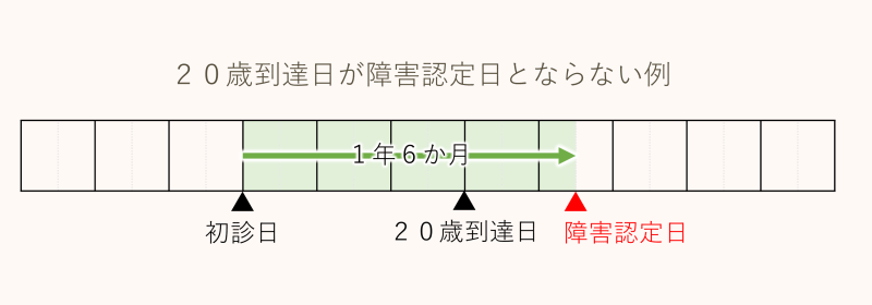 ただし、初診日が20歳以前にあったとしても、20歳に到達した日に、まだ1年6か月が経過していない時は、それに到達した日が障害認定日となりますので、その違いを確認しておいてください。