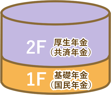 日本の公的年金制度は2階建ての制度で、1階部分が「基礎年金(国民年金)」、2階部分が「厚生年金、共済年金」となっています。
