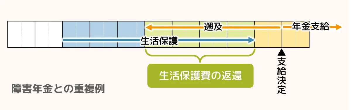これは、支給決定時に生活保護費を支給されていなくても、重複期間があれば適用されます。