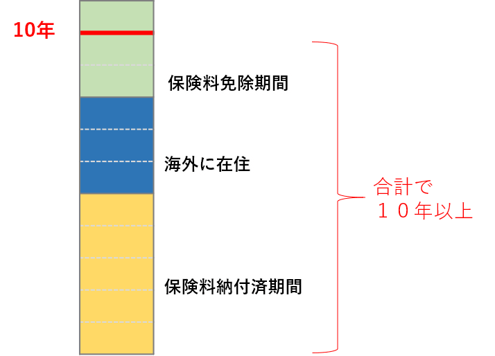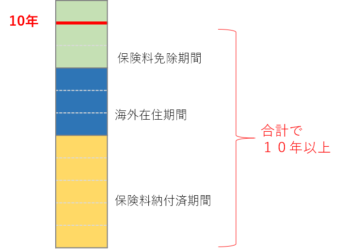 この10年の間には、事情があって保険料を納められない人に認められる「免除期間」、年金が任意だった時代に保険料を納めていない期間や海外に住んでいたために年金に加入していない期間などが対象となる、「合算対象期間」を含めることができます。