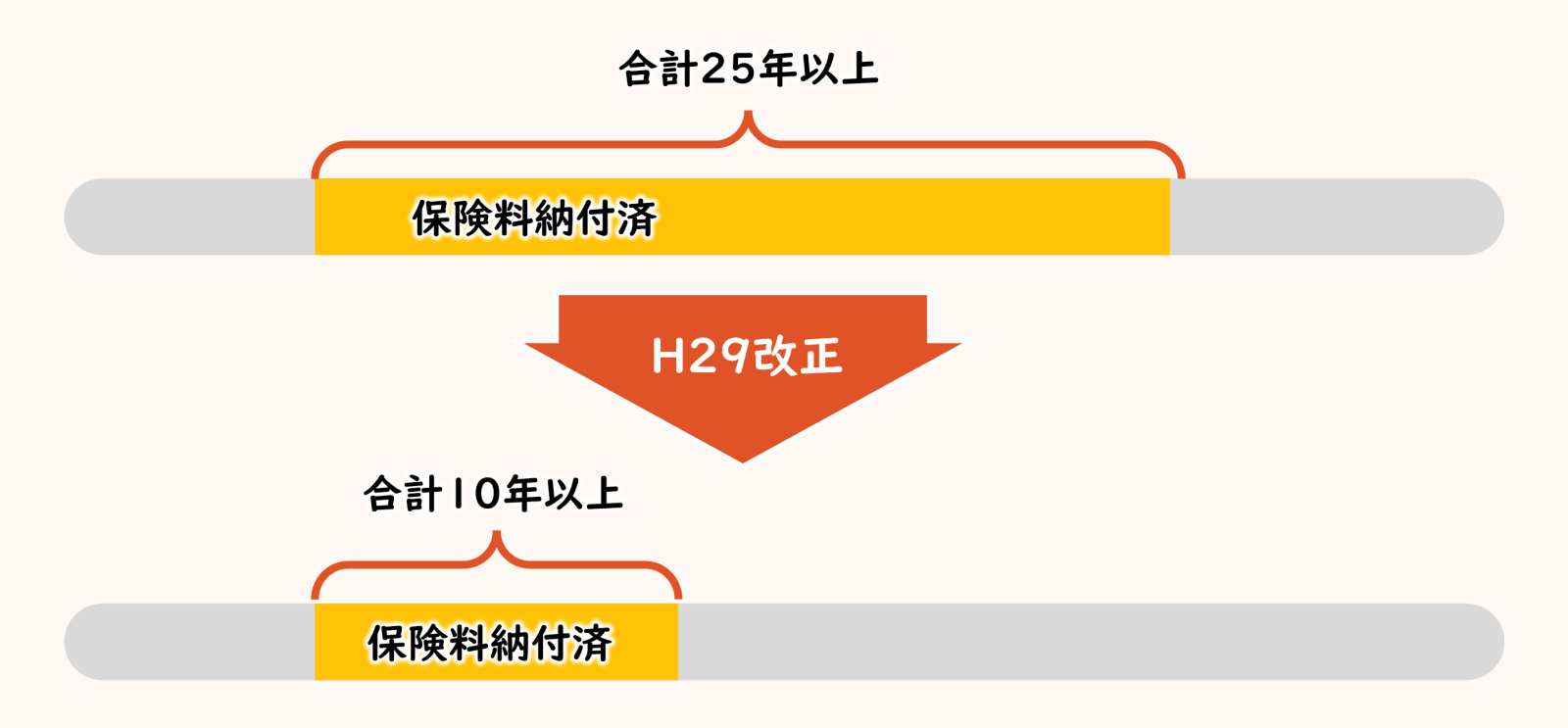 しかし、平成29年に法律が改正され、10年以上納付していれば、65歳から受け取れるようになったのです。つまり、昔に比べて、保険料を納めるべき期間が短くなっています。