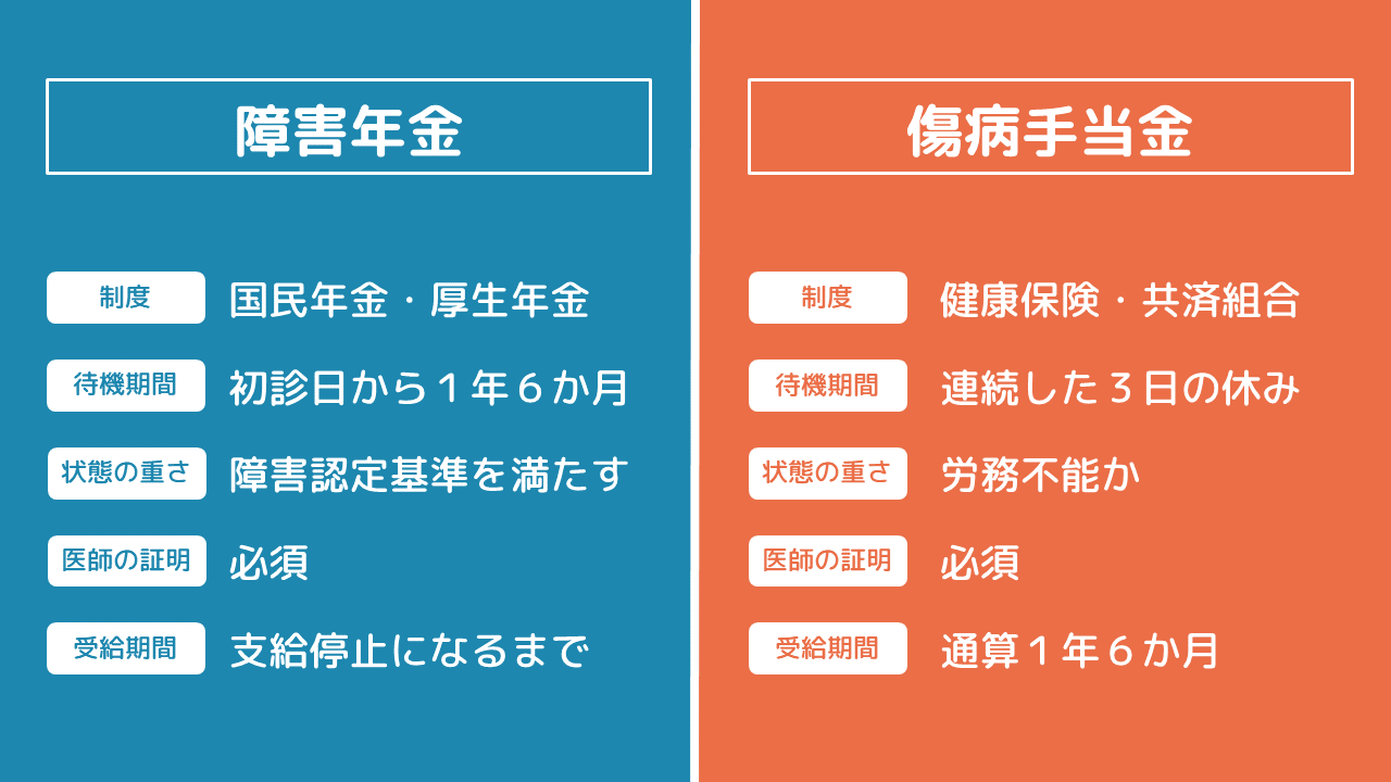 障害年金と傷病手当金の性質は似ている点がありますが、決定的に異なる点も存在します。