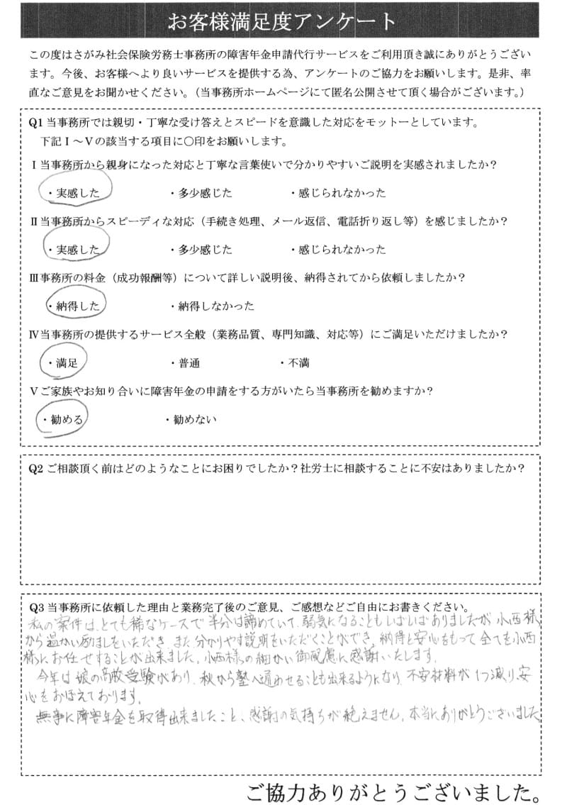 無事に障害年金を取得出来ましたこと、感謝の気持ちが絶えません。本当にありがとうございました。