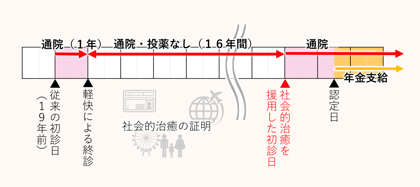 依頼者は症状が軽快し、B病院に通わなくなったあと、A病院にかかるまでの約16年間、通院服薬はありませんでした。